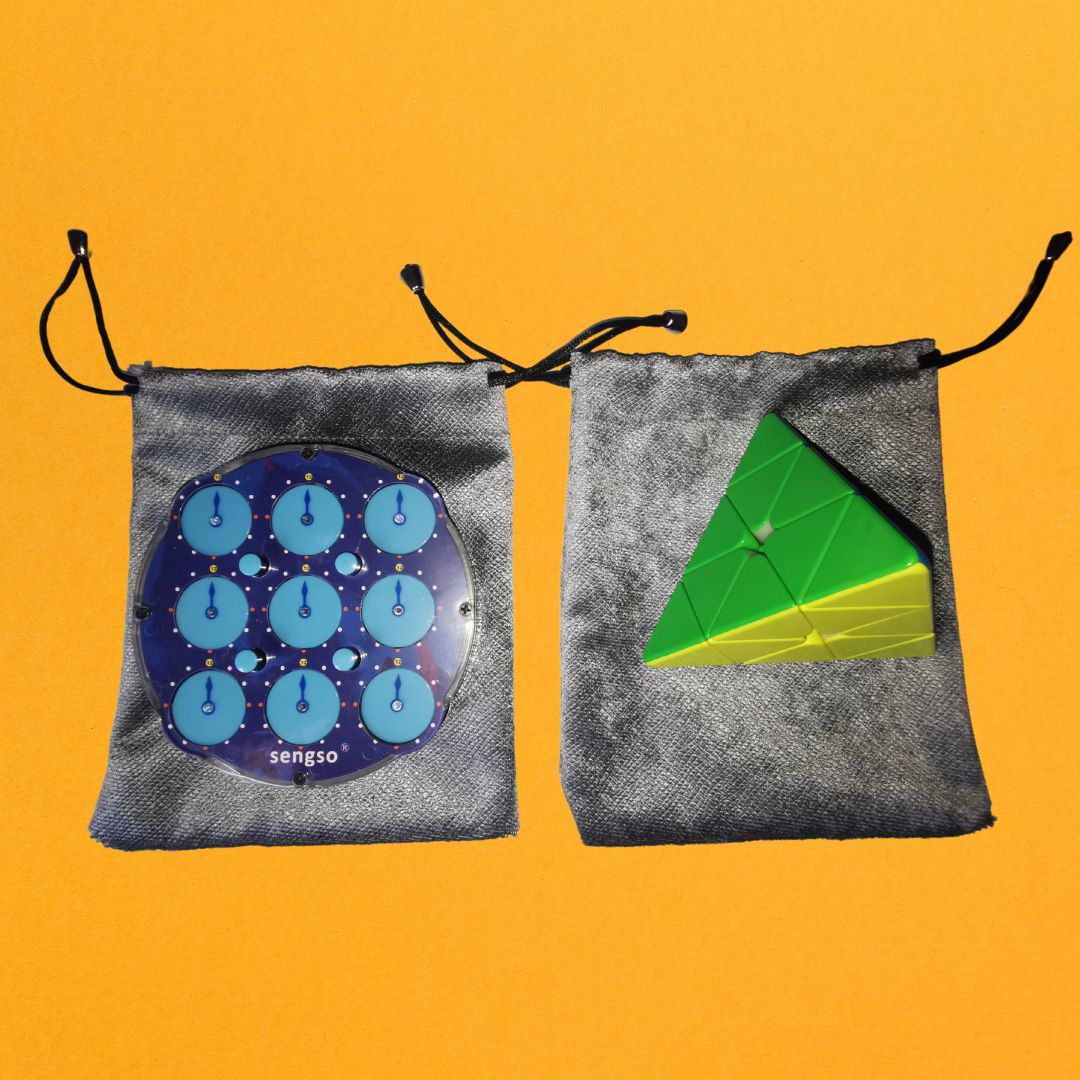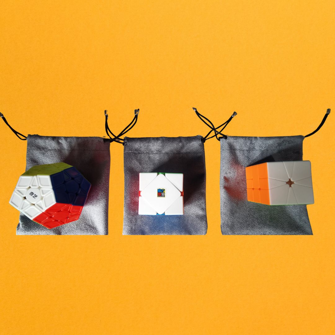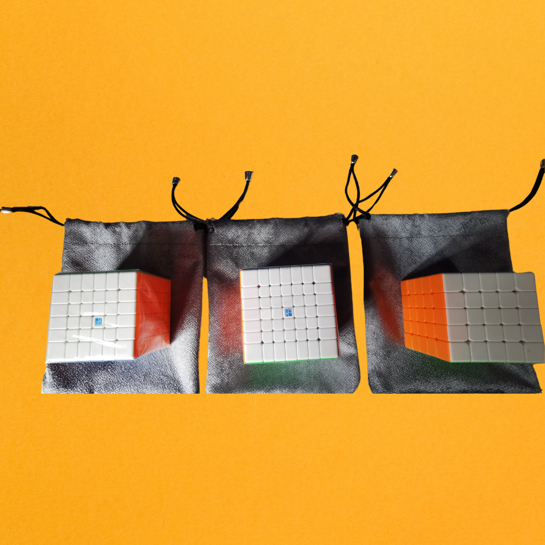 Estas prácticas bolsas individuales están diseñadas para almacenar y proteger cubos de Rubik de todas las categorías WCA (2×2 hasta 7×7, Pyraminx, Megaminx, etc.). Fabricadas con materiales resistentes y suaves, ofrecen una excelente protección contra golpes, rayones y polvo.