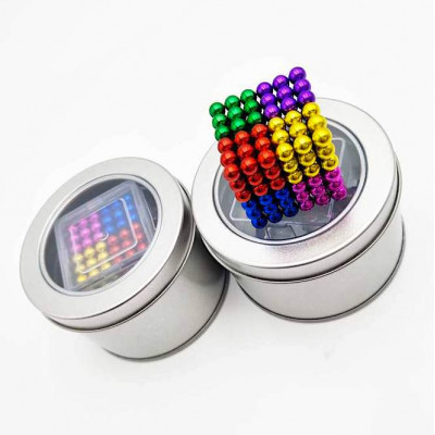Explora un mundo de creatividad, concentración y relajación con el NeoCube Magnético, un set de 216 potentes esferas magnéticas de 5 mm en 8 colores metálicos vibrantes: rojo, naranja, verde, azul, celeste, dorado, rosa y morado (27 bolas por color).